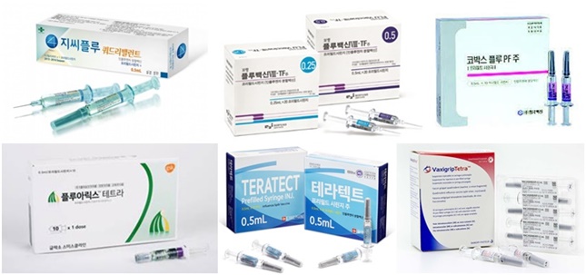 대표 제품은 SK 스카이 셀플루4가, GSK 플루아릭스 테트라, 사노피 박씨그리프 테트라입니다. 6개월 이상 모든 연령 접종 가능합니다. B형 변이에 강합니다.