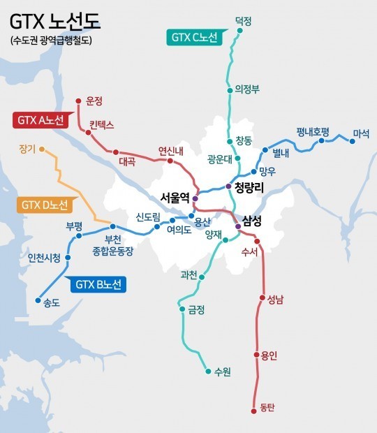 GTX는 수도권의 주요 도시를 연결하는 고속 철도로, 시속 100km 이상으로 운영될 예정입니다. GTX는 총 3개 노선(GTX-A, GTX-B, GTX-C)으로 구성되며, 기존의 교통 체증 문제를 해결하고, 출퇴근 시간을 단축시킬 것으로 기대됩니다.